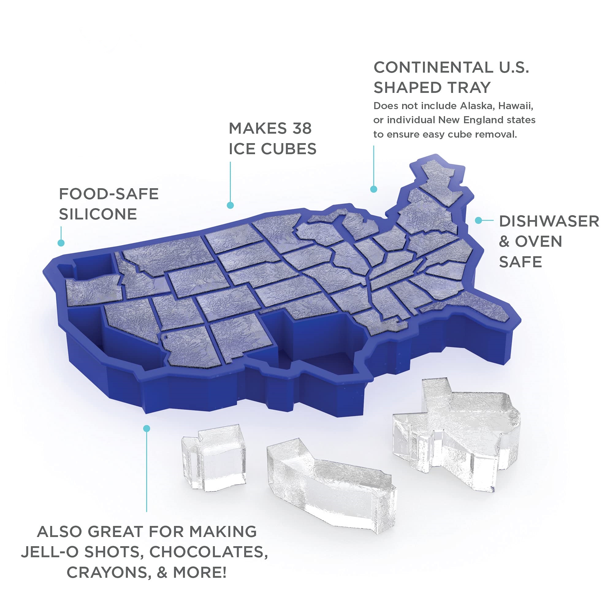 Measuring 8 inches long, this silicone ice tray is crafted to the shape of American states (sorry Alaska and Hawaii). Simply pour-in your favorite fillings, freeze, and remove the icicles from the non-stick surface.